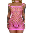 Mini dress goes on in one piece and features thick fishnet that "grips" your body.