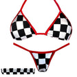 3 Piece Mini Kini & Matching Garter: MotorSport Checkers - XS - M is backordered and will ship as soon as it is back in stock.