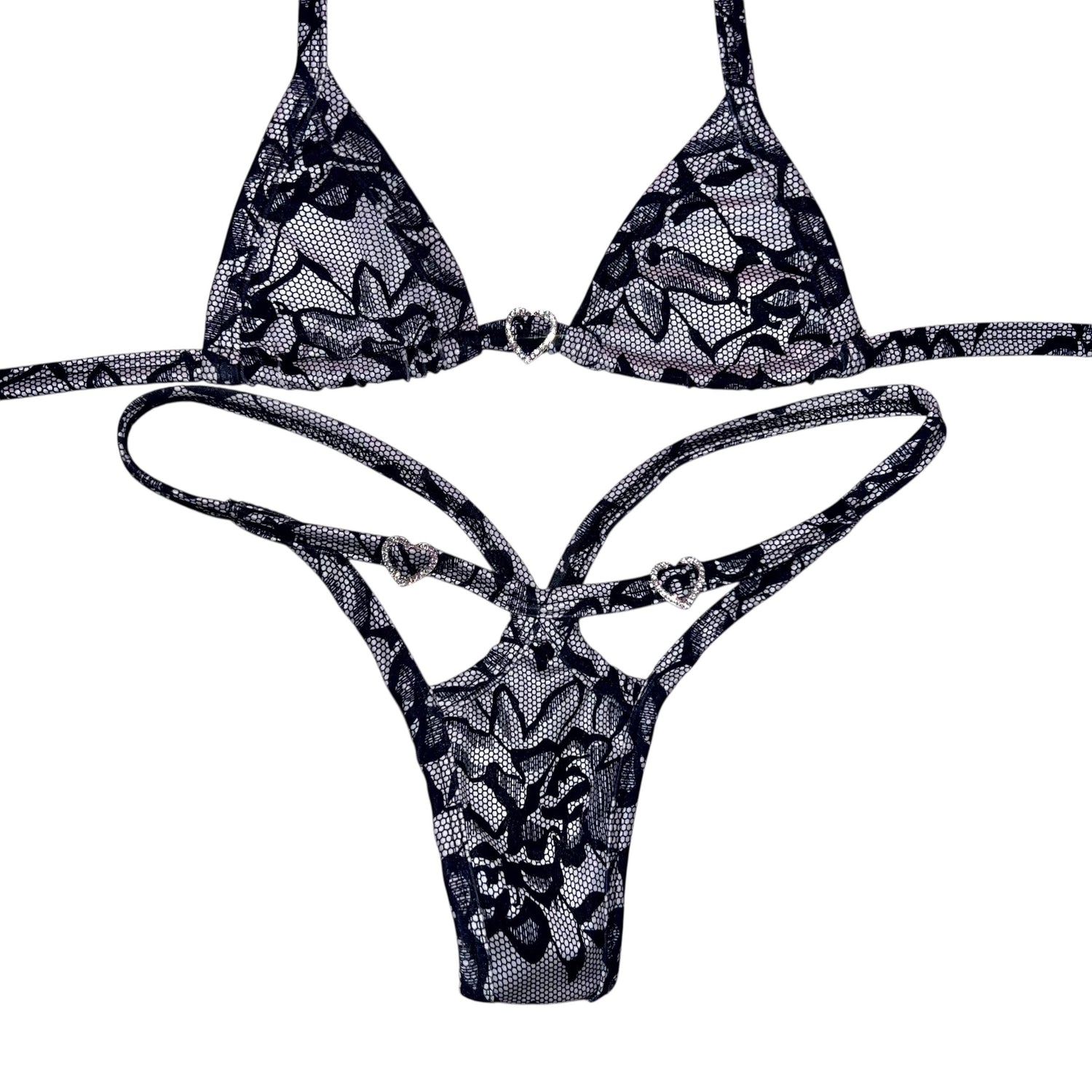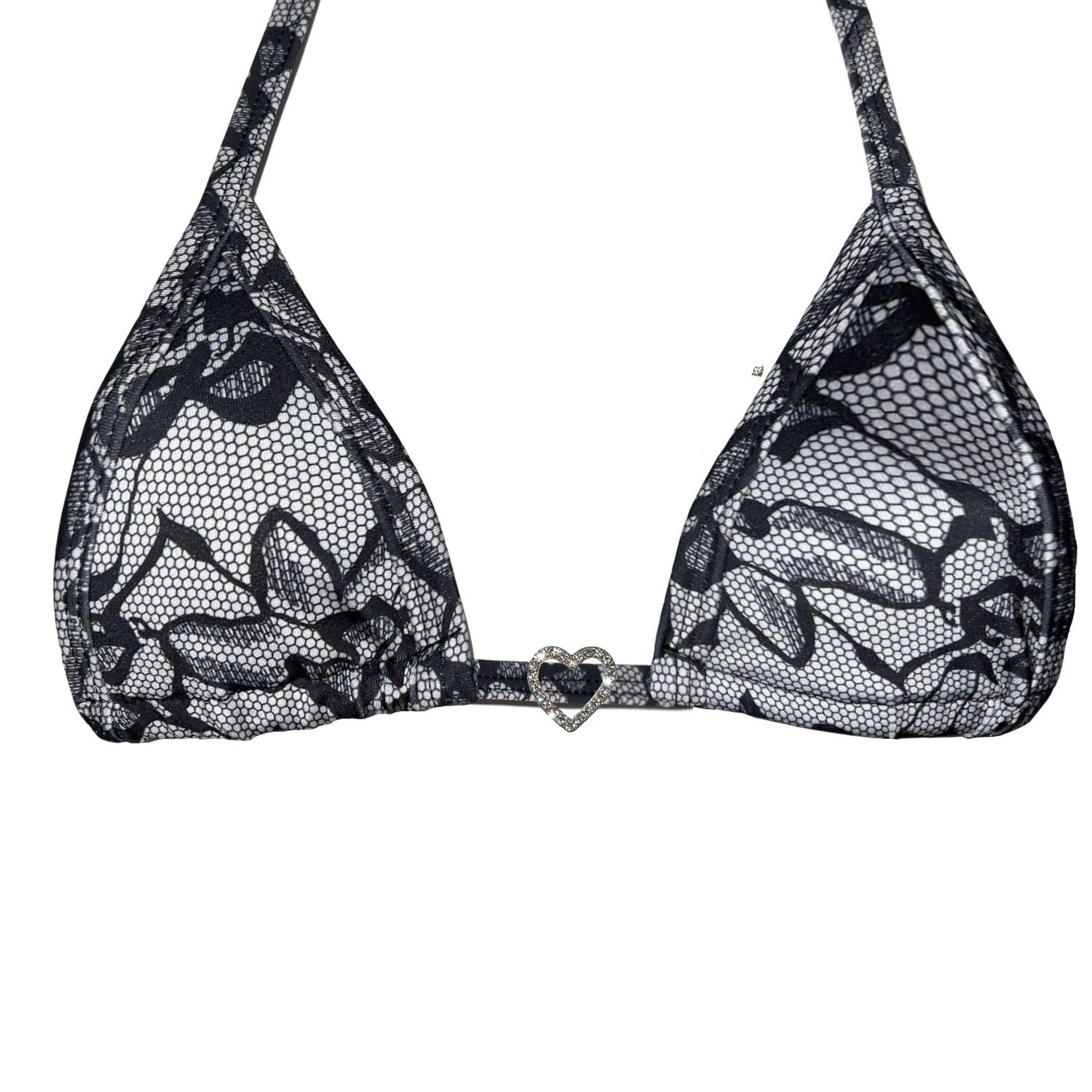 Era of the Girly Girls 💞 Our classic tri top in the cutest lacy look print + heart charm are sure to attract princess treatment only! Perfect for mixing n matching with your most adorable fits :)